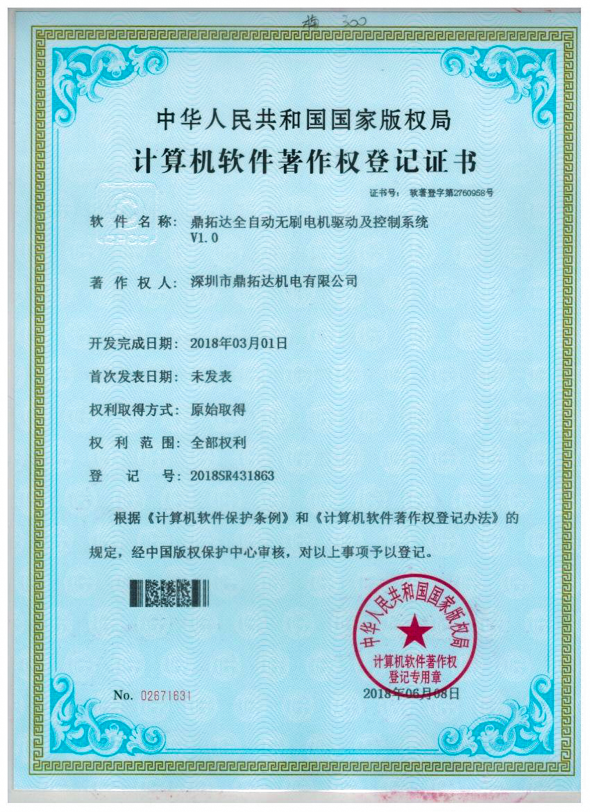 首頁->產品認證->鼎拓達全自動無刷電機驅動及控制系統V1.0
